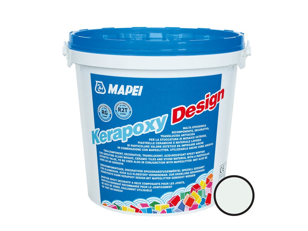 Kerapoxy Design od Mapei je dvousložková epoxidová velmi kvalitní kyselinovzdorná spárovací hmota a lepidlo se sníženým vertikálním skluzem na mozaiky, obklady a dlažby z keramiky, skla a přírodního kamene .