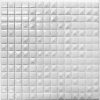 Skleněná mozaika bílá 25103APYRM s lesklým povrchem a čtvercovým tvarem jednotlivých prvků mozaiky.