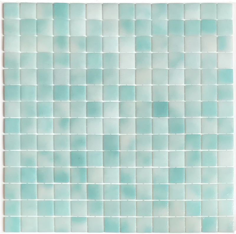 Skleněná mozaika modrá; tyrkysová 25AZOVLH s lesklým povrchem a čtvercovým tvarem jednotlivých prvků mozaiky.