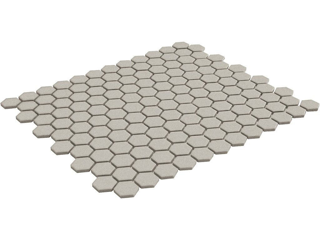 Keramická mozaika LOH2029 je ideální volbou pro prostory, kde je potřeba maximální bezpečnost, odolnost a zároveň moderní vzhled. Díky matnému neglazovanému protiskluznému povrchu poskytuje spolehlivou trakci i ve vlhkém prostředí a je vhodná pro domácí i komerční použití. Šedý odstín působí elegantně, univerzálně a snadno se kombinuje s různými materiály. Malé hexagony 2,3 × 2,6 cm vytvářejí moderní jemnou geometrii.