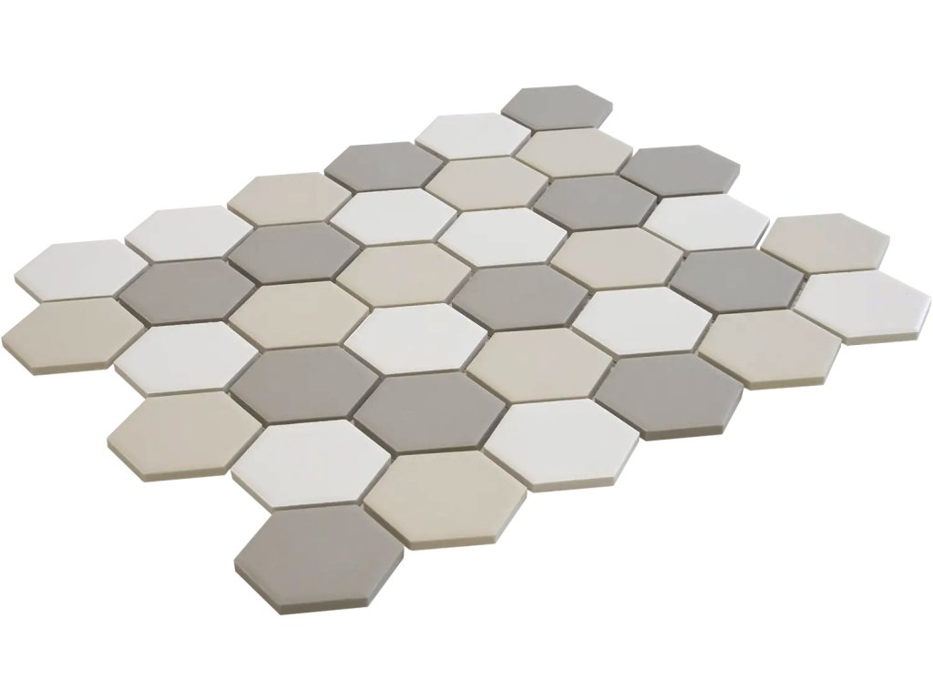 Keramická mozaika FIN LOH10MIX2 hexagony 5,1x5,9 bílá; šedá; béžová matná protiskluzná