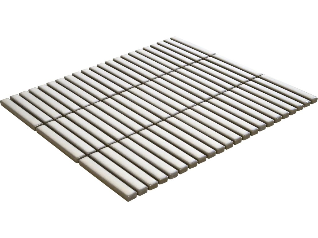 Dílky o velikosti 1,2 × 9,2 cm jsou upevněny na síťce 28,2 × 30,8 cm, která umožňuje precizní a rovnoměrnou instalaci. Mozaika má lesklý keramický povrch, spáru 2,5 mm, tloušťku 8 mm a je plně mrazuvzdorná. Vhodná je pouze jako obklad.