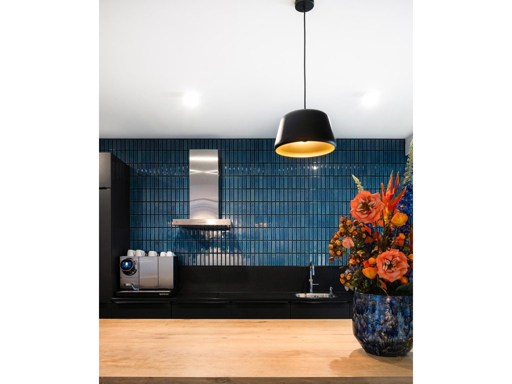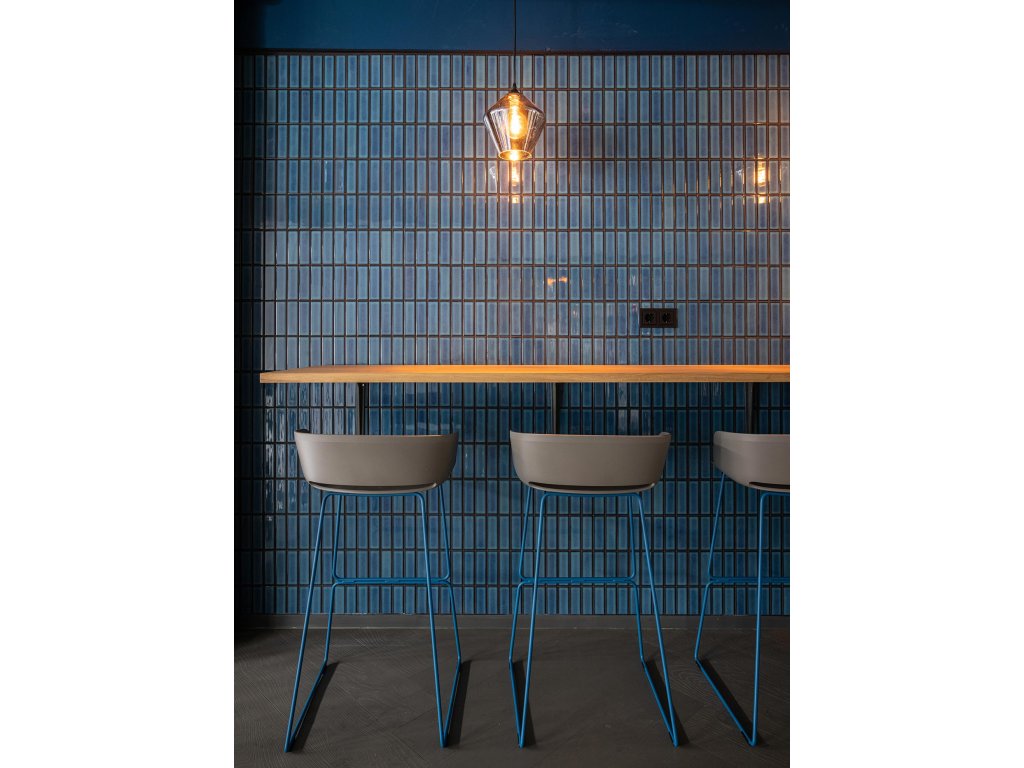Keramická mozaika modrá AF45625 s lesklým povrchem a odbélníkovým tvarem jednotlivých prvků mozaiky.