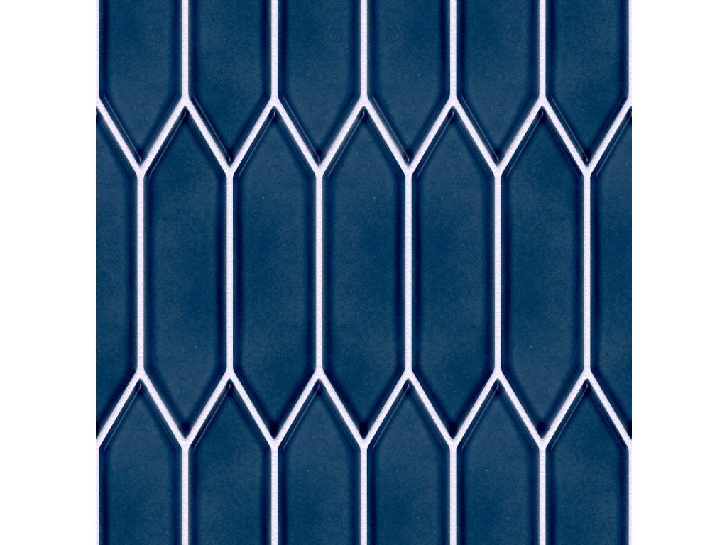 Keramická mozaika PAPIC38 v tmavě modrém odstínu zaujme elegantním a moderním vzhledem díky své lesklé glazuře a unikátnímu tvaru picket – podélného hexagonu, který vizuálně připomíná stylovou šipku. Lesklý povrch vytváří efektní odlesky a podtrhuje hloubku syté modré barvy, díky čemuž mozaika působí luxusně a současně velmi čistě. Rozměr jednotlivých dílků 4,8 × 19,5 cm vytváří dynamickou kresbu, která je výrazná, ale stále působí harmonicky a nadčasově.