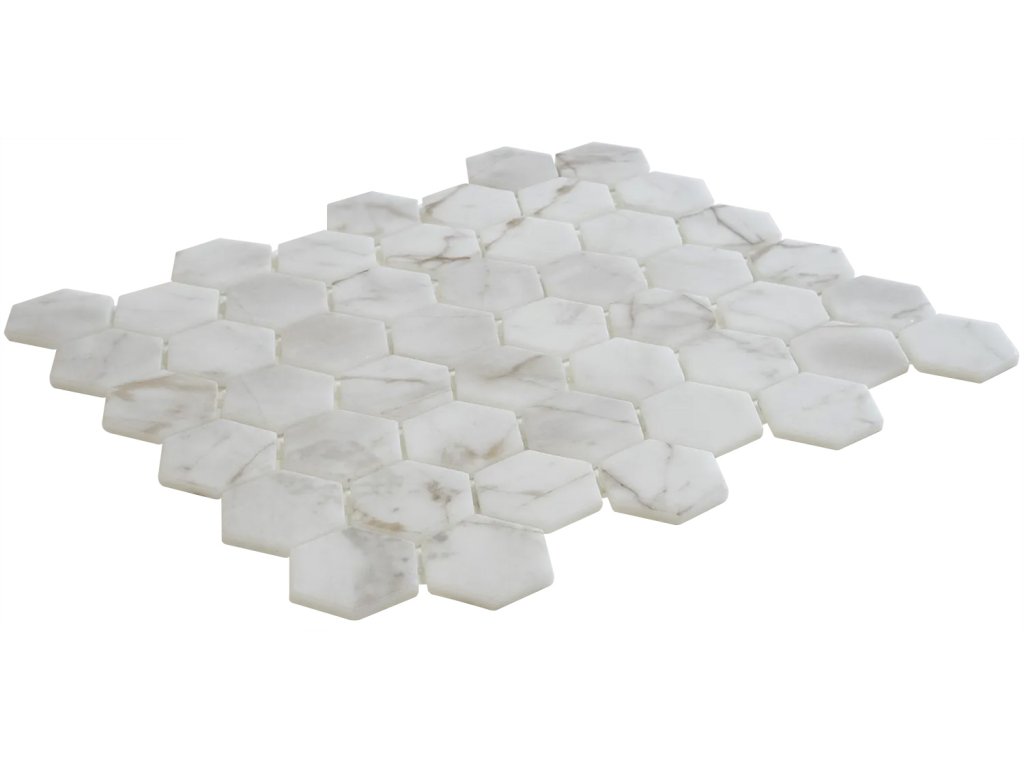 Skleněná mozaika Bianco Marble Print hexagony 4,4x5 bílá matná