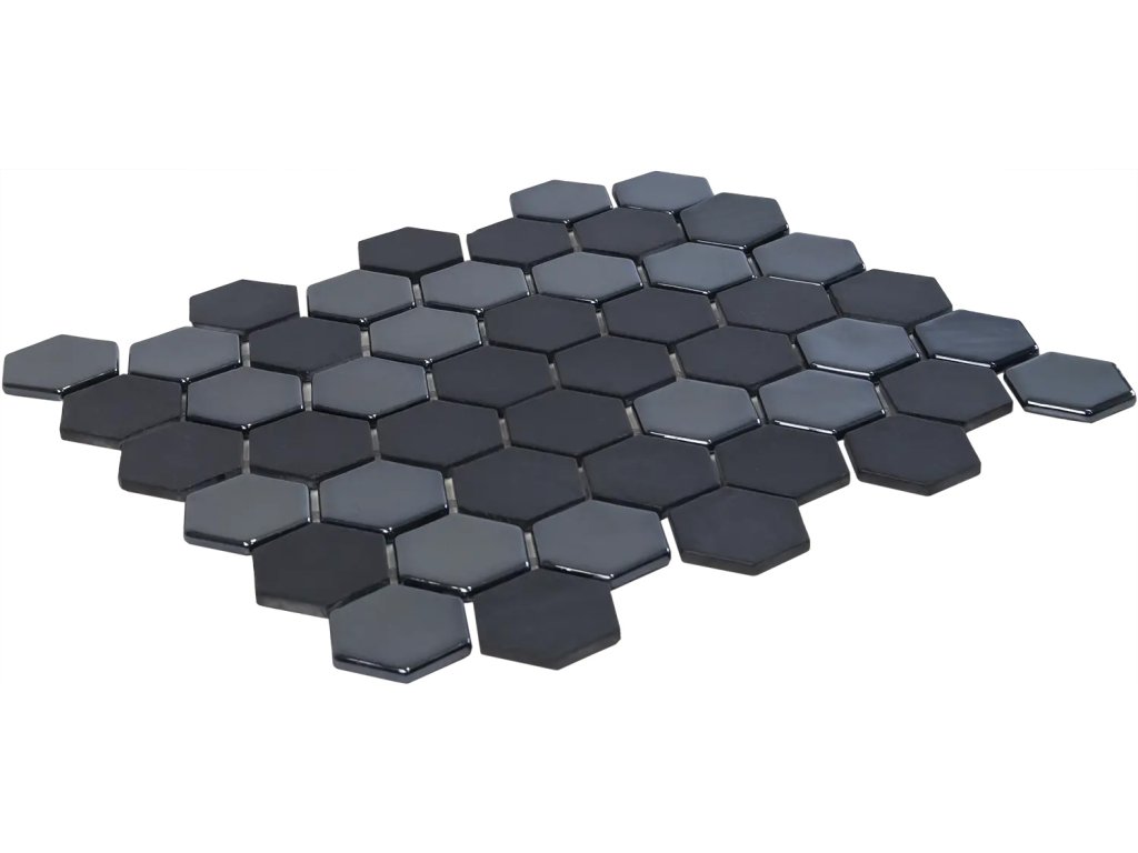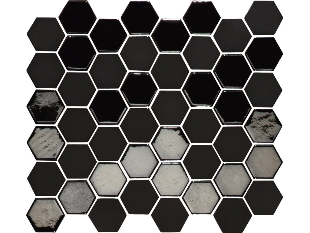 Skleněná mozaika VALENCIA VAL920 hexagony 4,4x5 černá se smíšeným povrchem